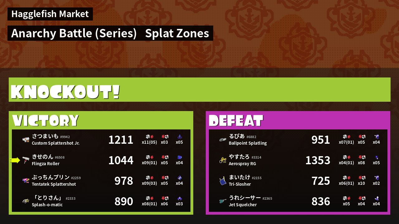 | Mode | Splat Zones - Anarchy Battle (Series) | ||