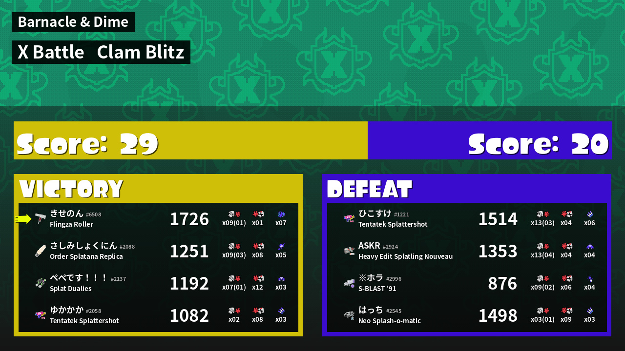 | Weapon | Flingza Roller ( Ink Mine / Tenta Missiles) | ||