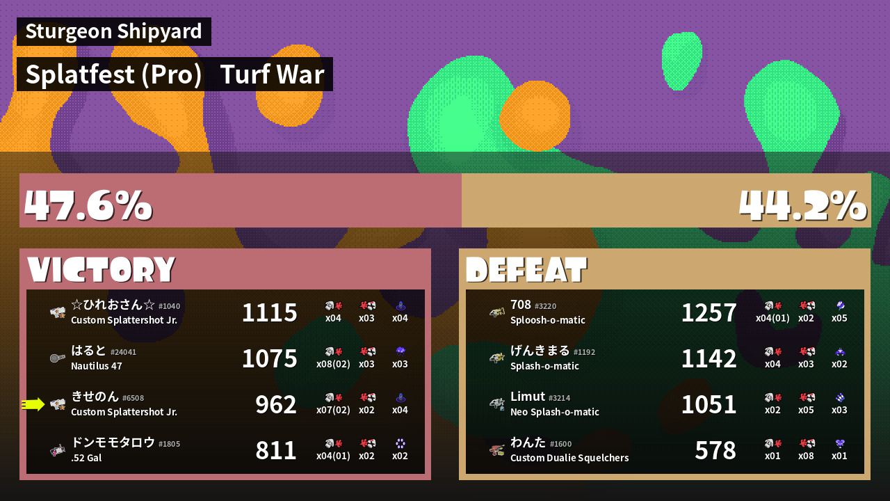 | Medals | #1 Super Jump Spot #1 Splat Assister #1 Damage Taker | ||