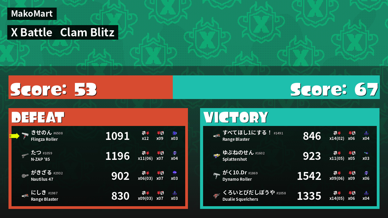| Weapon | Flingza Roller ( Ink Mine / Tenta Missiles) | ||