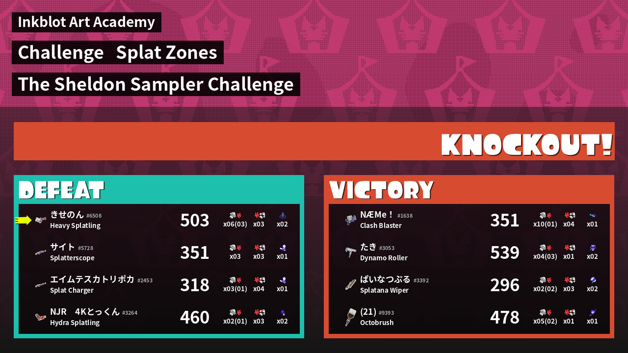 | Medals | #1 Overall Splatter #1 Turf Inker #1 Popular Target | ||