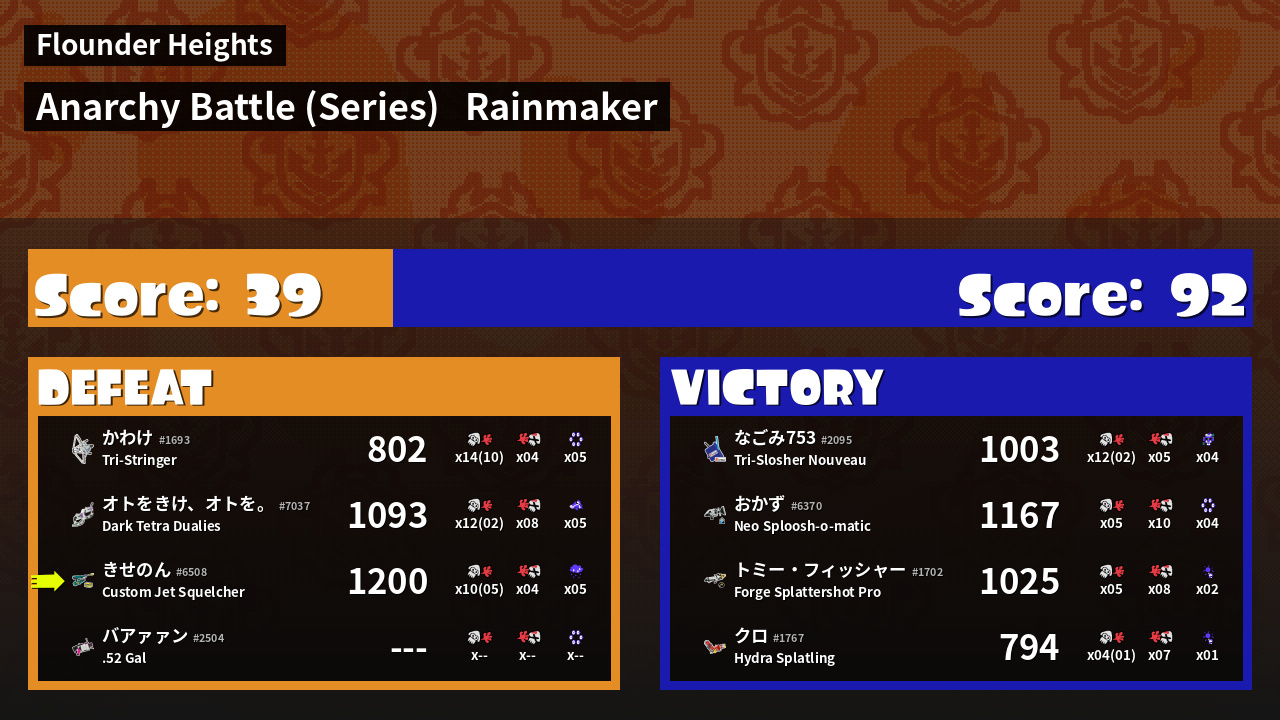 | Mode | Rainmaker - Anarchy Battle (Series) | ||