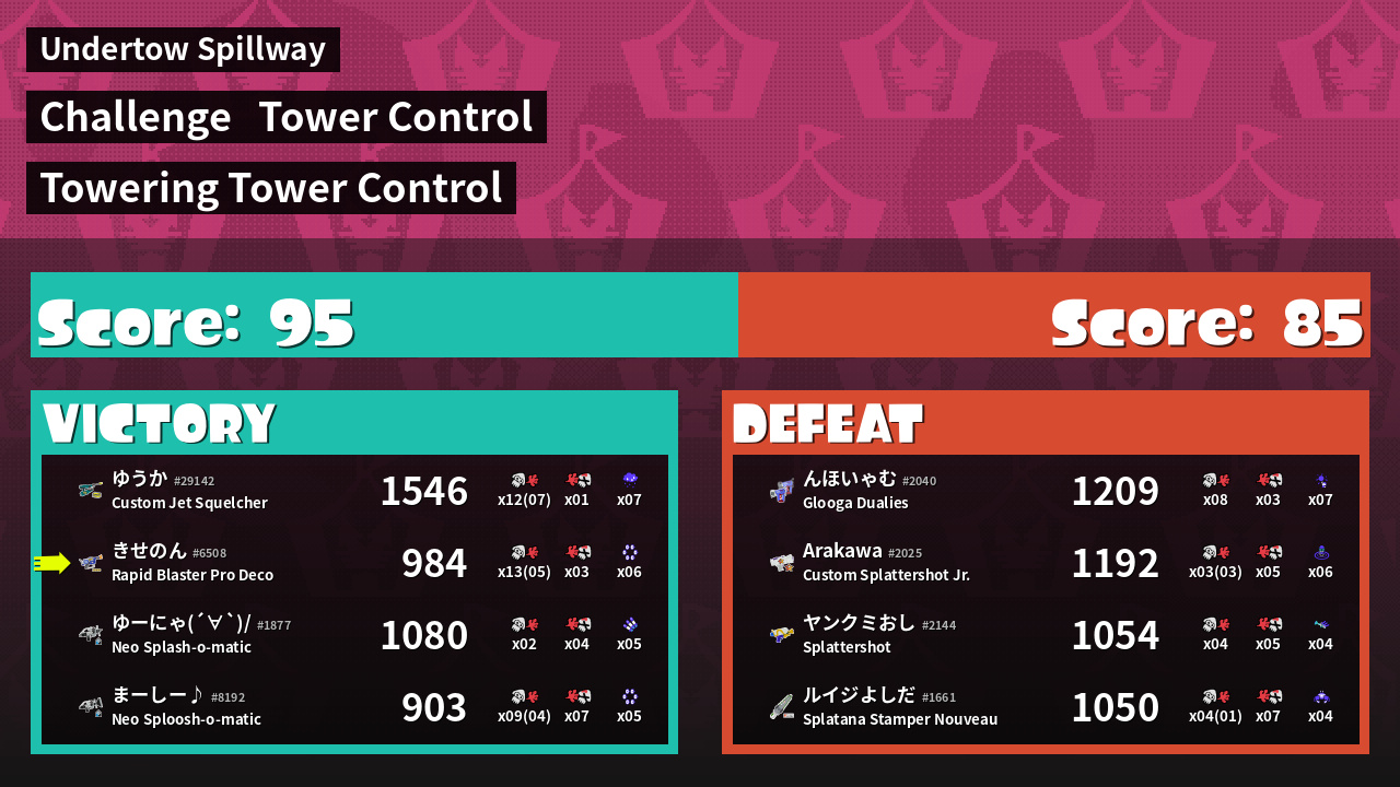 | Medals | #1 Overall Splatter #1 Enemy Splatter #1 Tower Stopper | ||