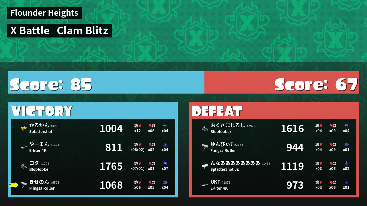 | Mode | Clam Blitz - X Battle | ||