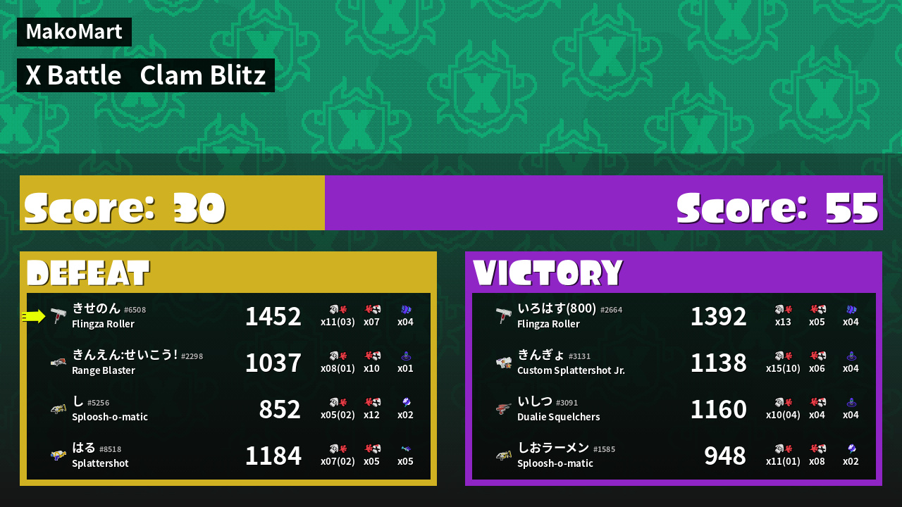 | Mode | Clam Blitz - X Battle | ||
