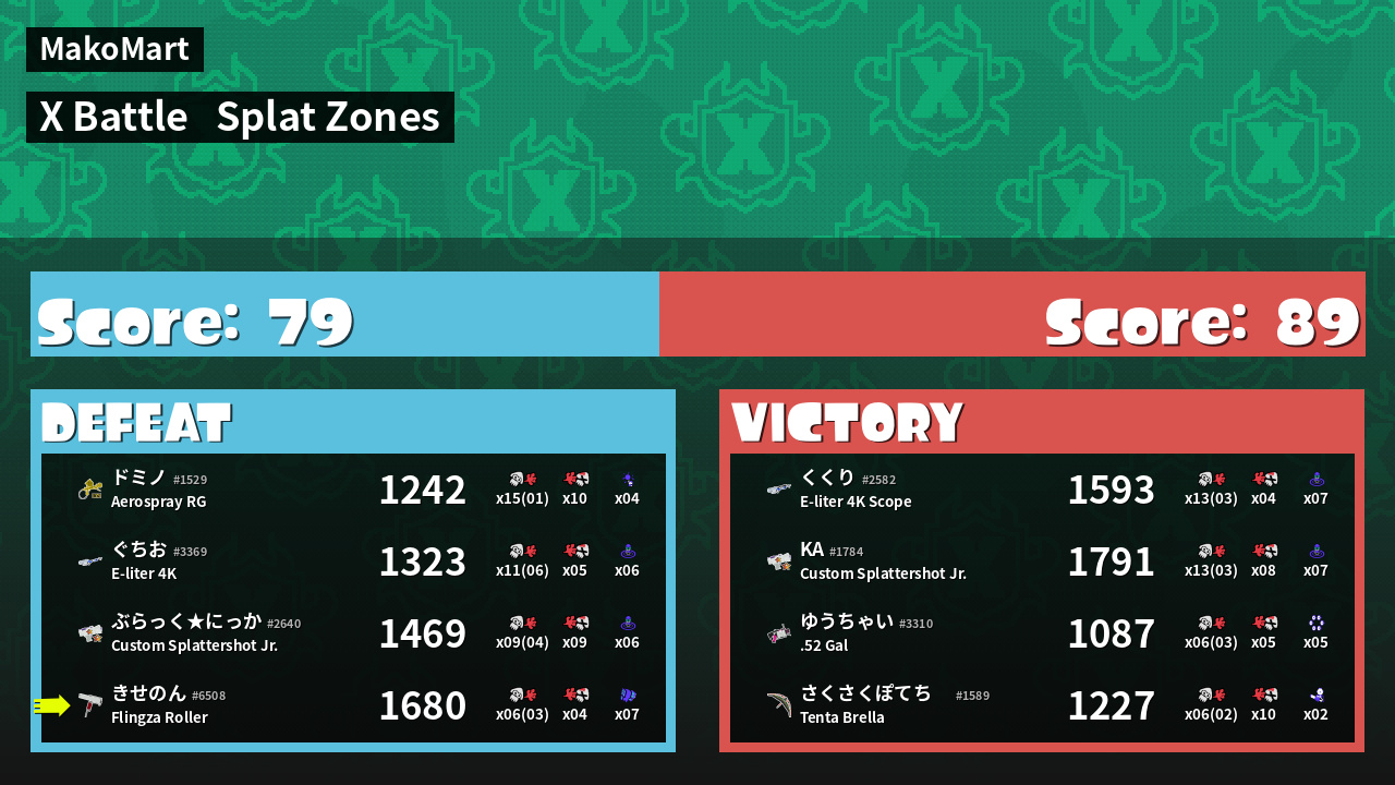 | Weapon | Flingza Roller ( Ink Mine / Tenta Missiles) | ||