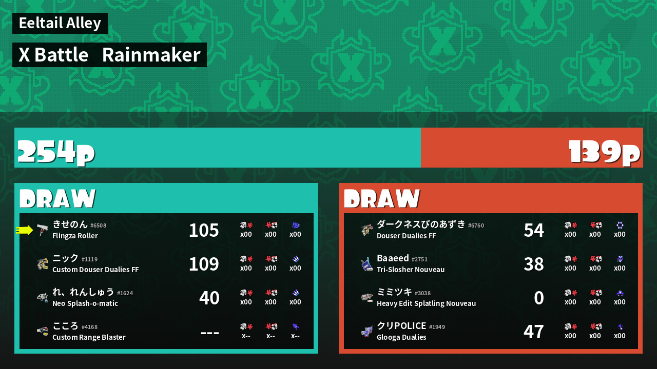 | Weapon | Flingza Roller ( Ink Mine / Tenta Missiles) | ||