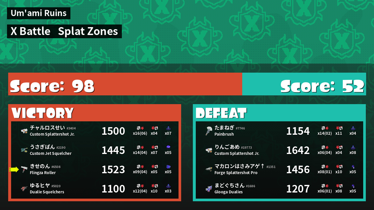 | Weapon | Flingza Roller ( Ink Mine / Tenta Missiles) | ||