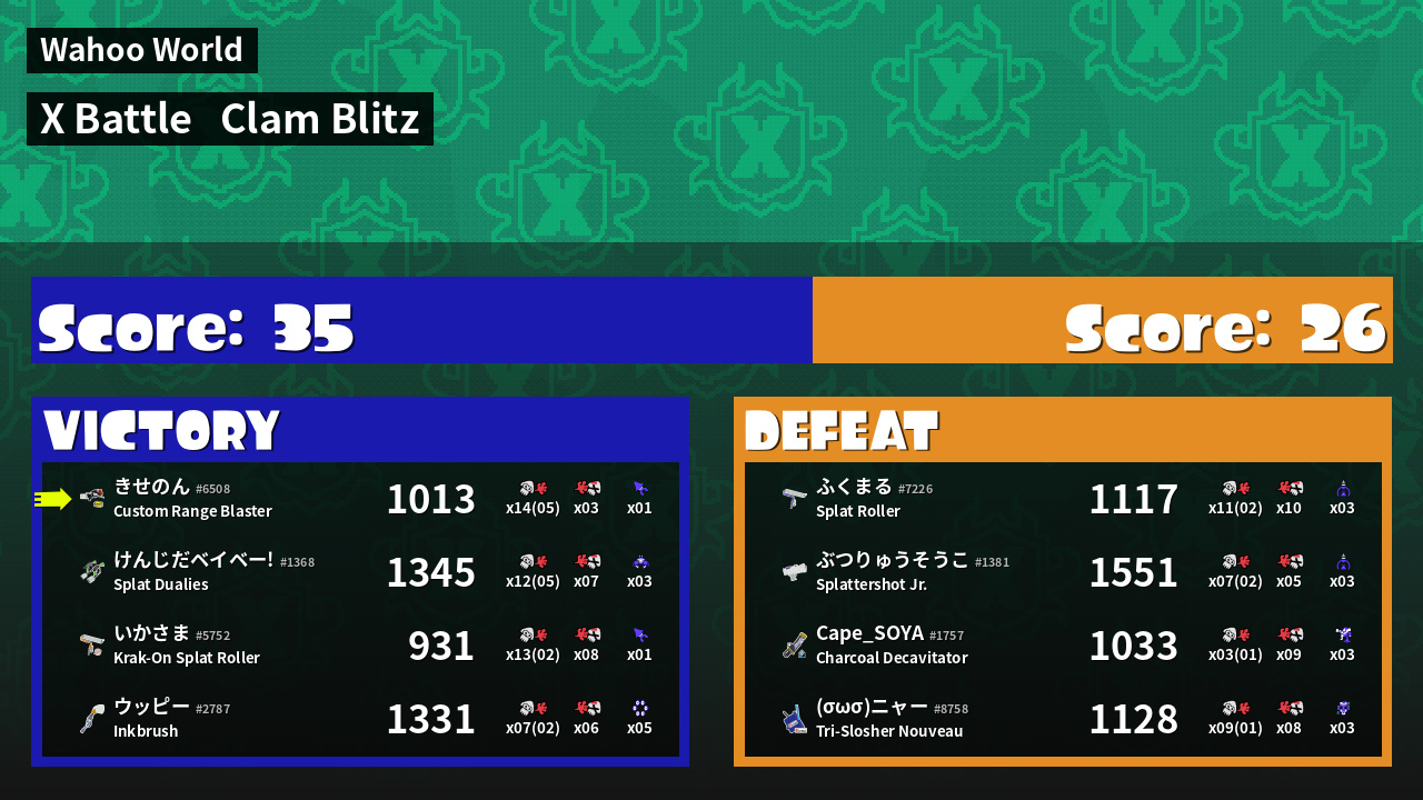 | Medals | #1 Overall Splatter #1 Score Booster #1 Clam Carrier | ||