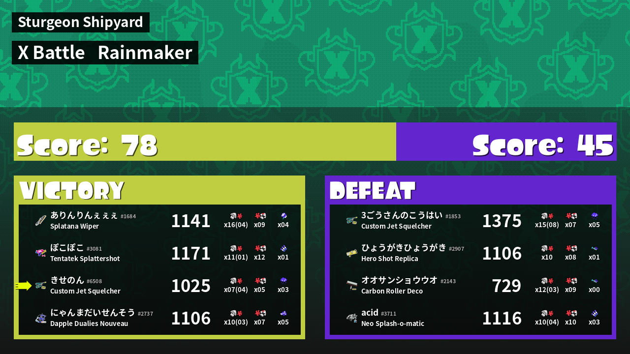 | Medals | #1 Score Booster #1 Super Jump Spot #1 Splat Assister | ||
