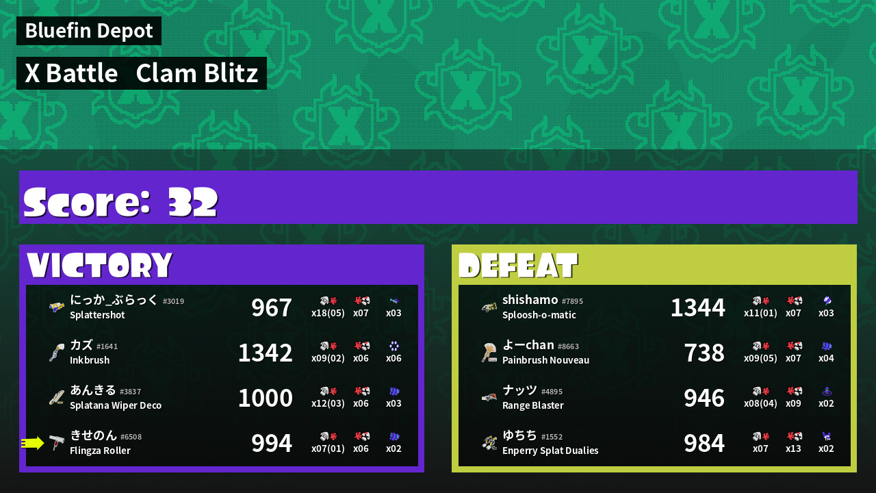 | Weapon | Flingza Roller ( Ink Mine / Tenta Missiles) | ||