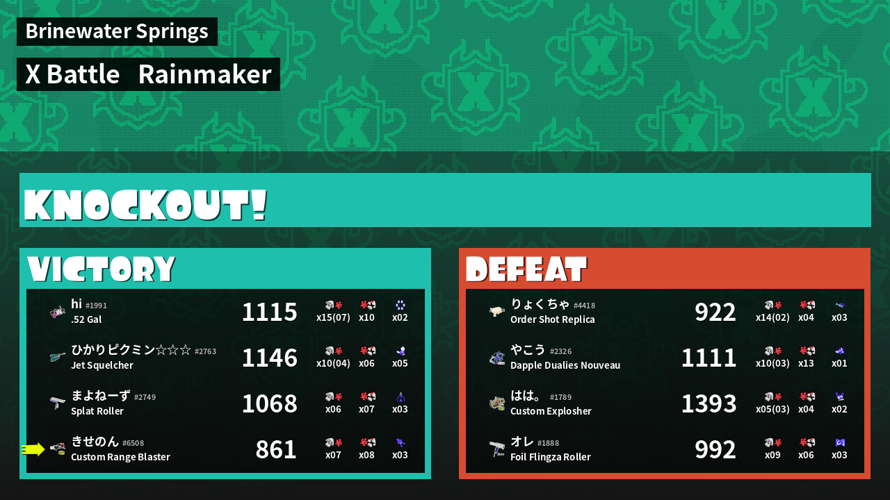 | Medals | #1 Ground Traveler #1 Kraken Royale User #2 Enemy Splatter | ||
