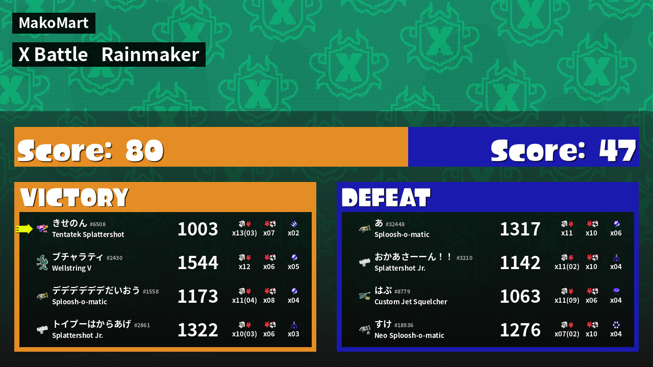 | Mode | Rainmaker - X Battle | ||