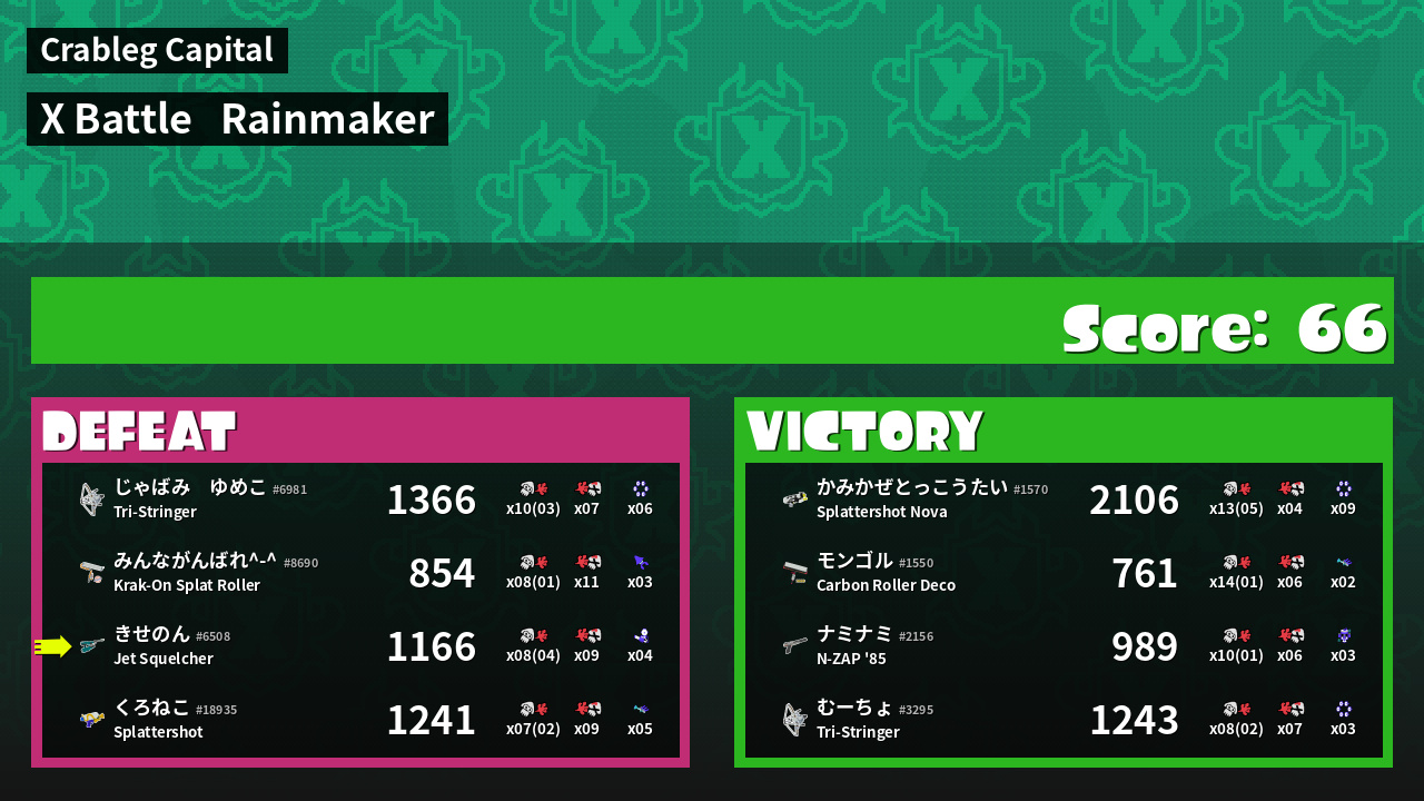 | Medals | #1 Splat Assister #1 Ink Vac User #2 Overall Splatter | ||