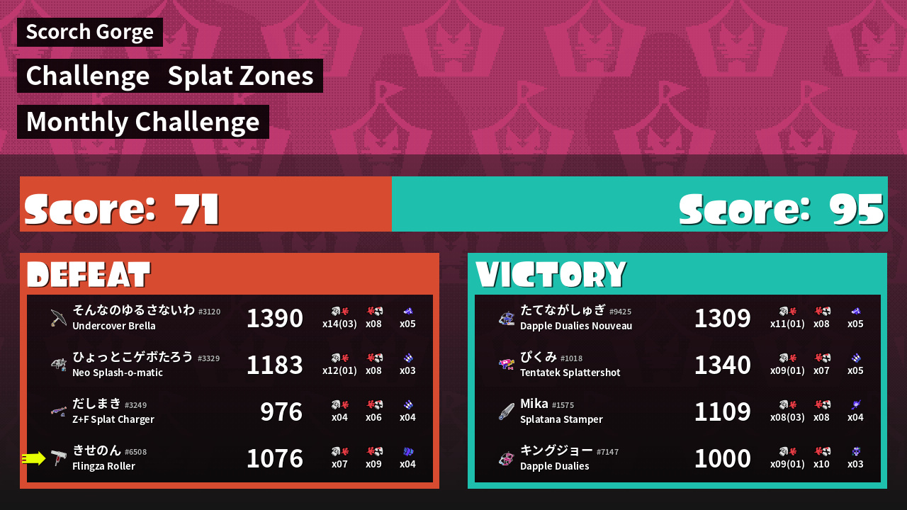 | Weapon | Flingza Roller ( Ink Mine / Tenta Missiles) | ||
