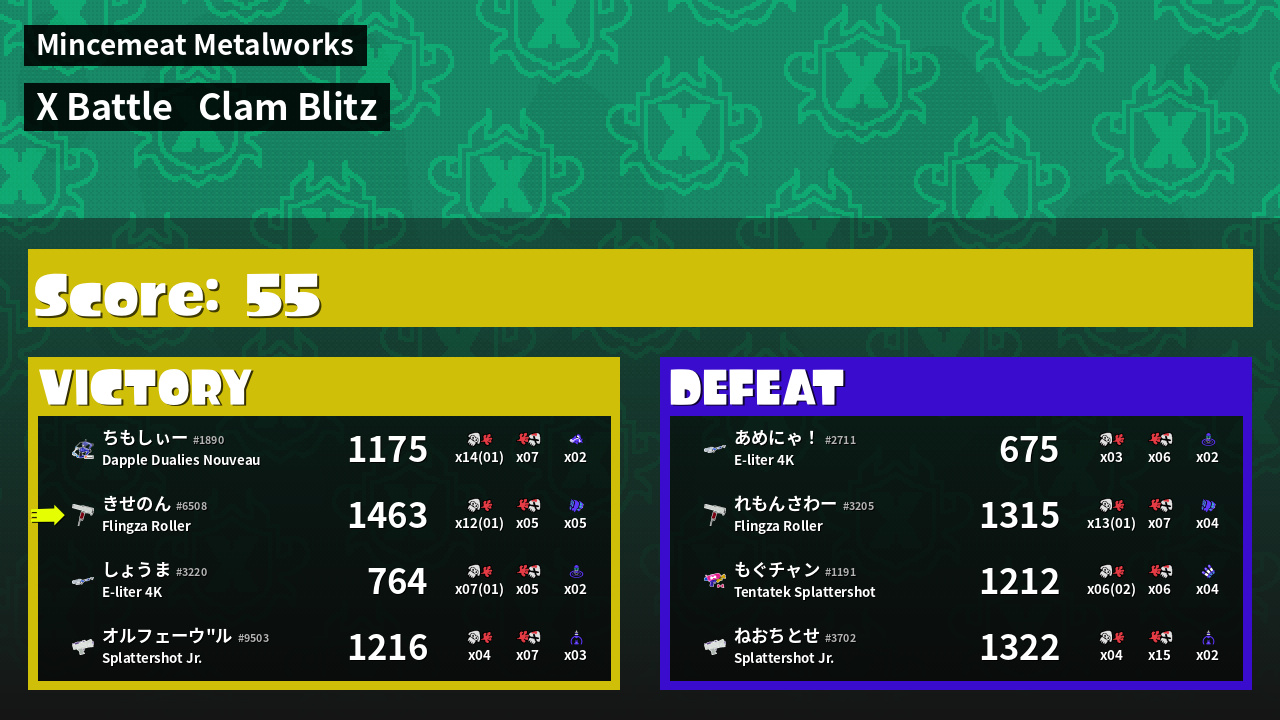 | Weapon | Flingza Roller ( Ink Mine / Tenta Missiles) | ||
