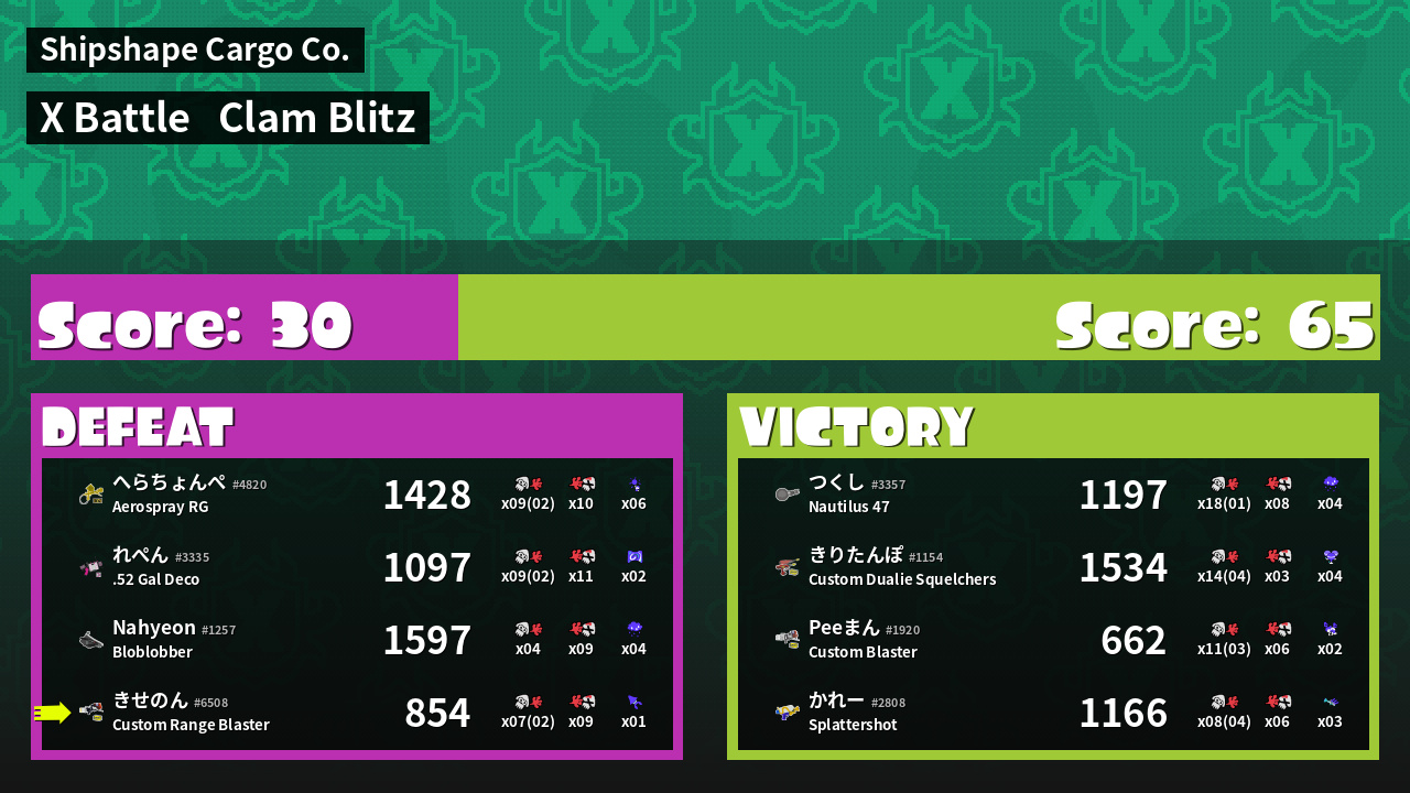 | Mode | Clam Blitz - X Battle | ||
