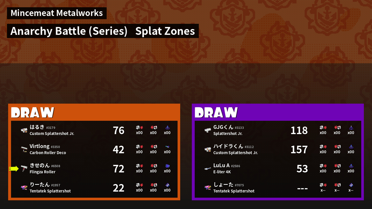 | Mode | Splat Zones - Anarchy Battle (Series) | ||