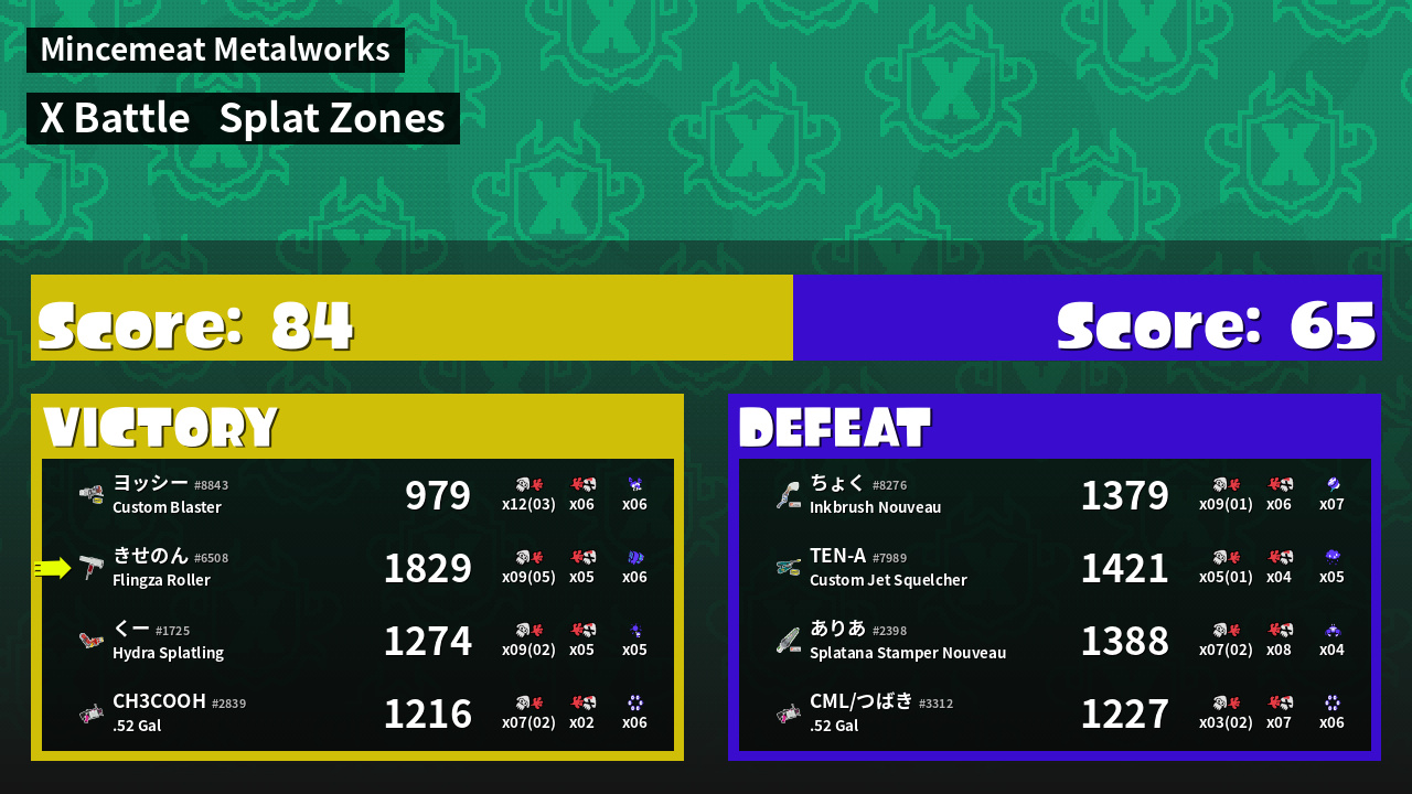 | Mode | Splat Zones - X Battle | ||