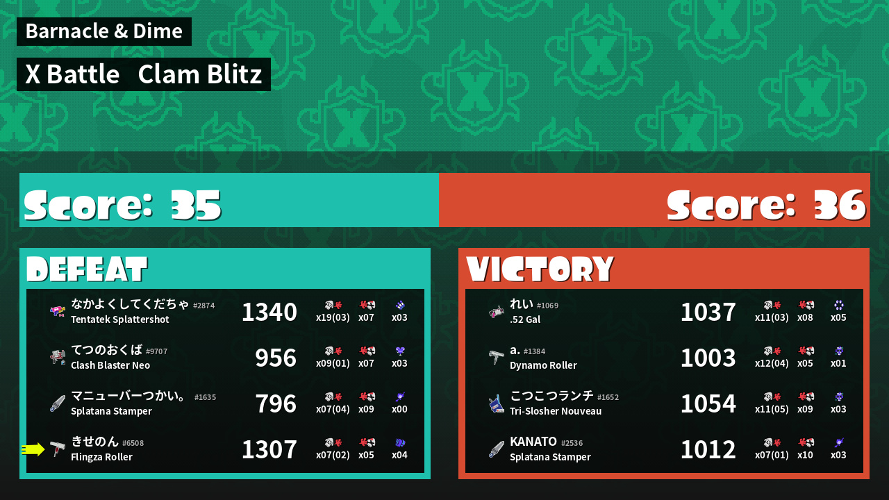 | Weapon | Flingza Roller ( Ink Mine / Tenta Missiles) | ||