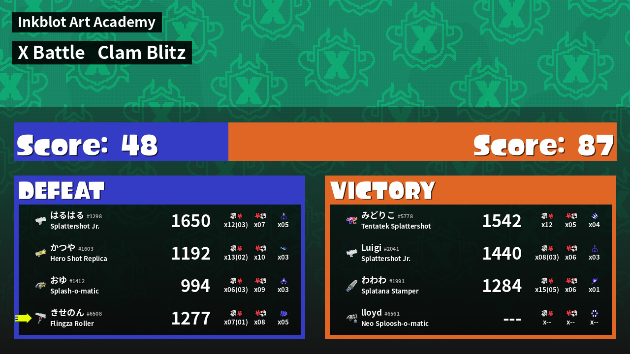 | Weapon | Flingza Roller ( Ink Mine / Tenta Missiles) | ||