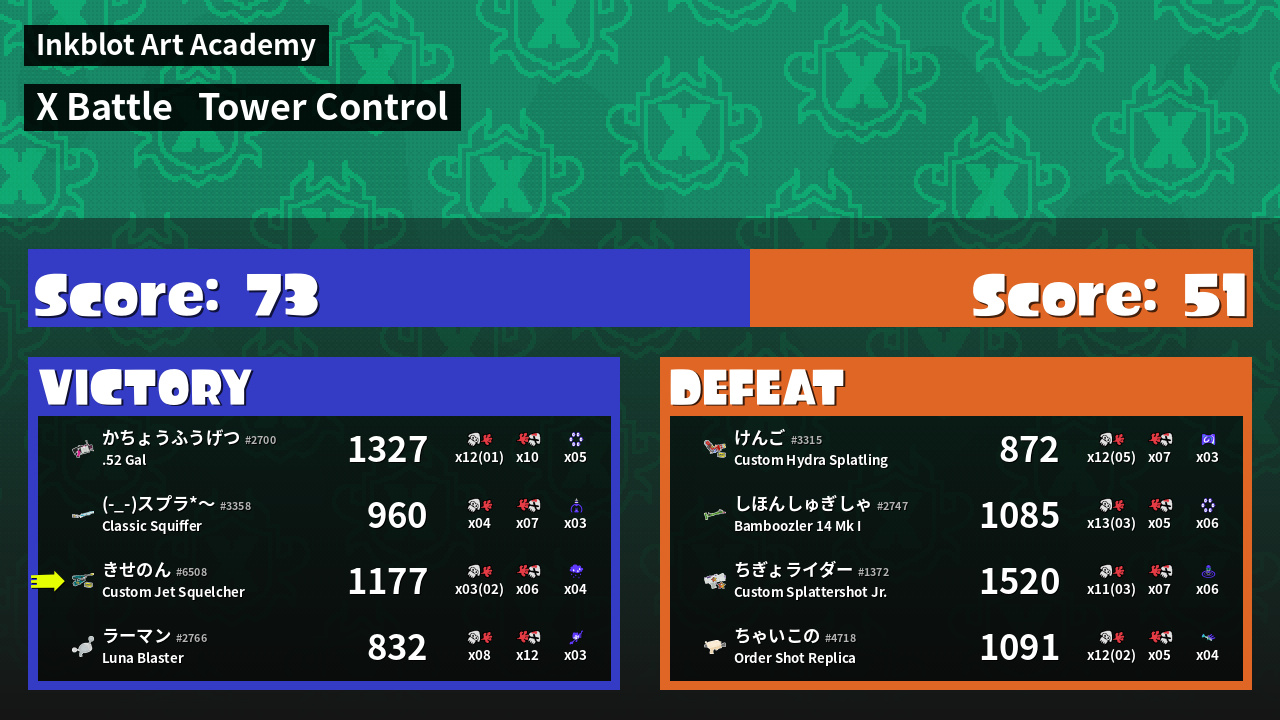 | Mode | Tower Control - X Battle | ||