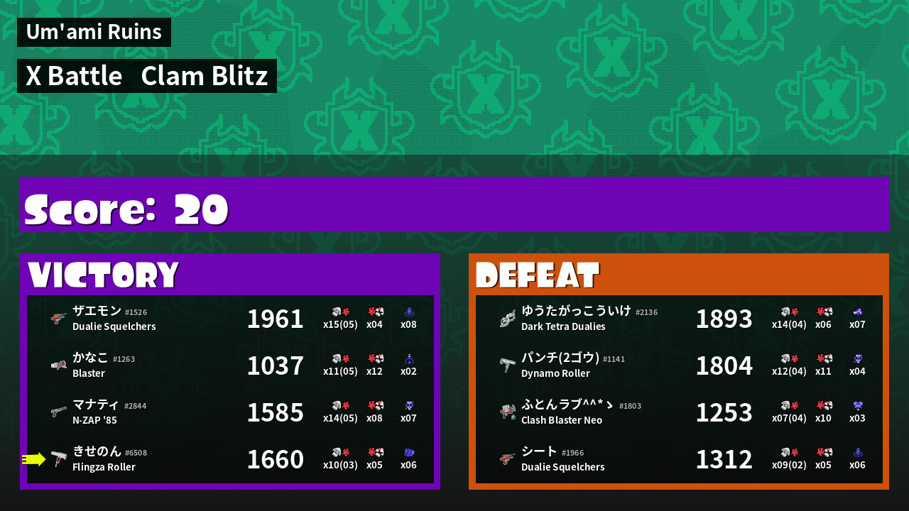 | Medals | #1 Ground Traveler #1 Tenta Missiles User #2 Clam Carrier | ||