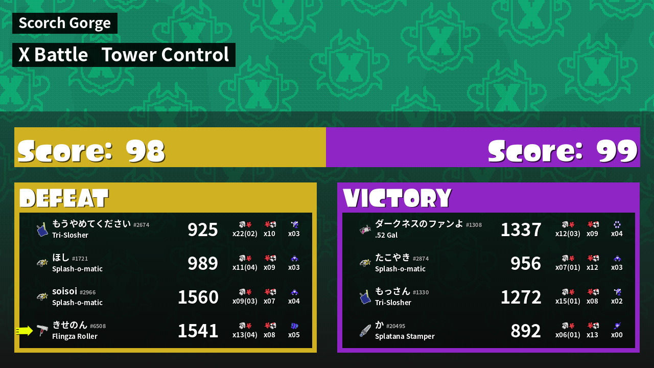 | Mode | Tower Control - X Battle | ||
