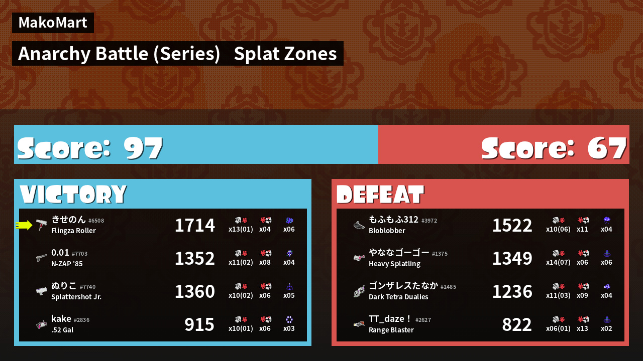 | Mode | Splat Zones - Anarchy Battle (Series) | ||