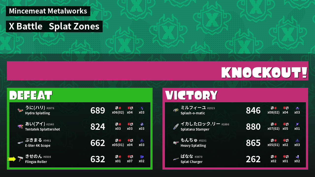 | Medals | #1 Tenta Missiles User #2 Splat Zone Guard | ||