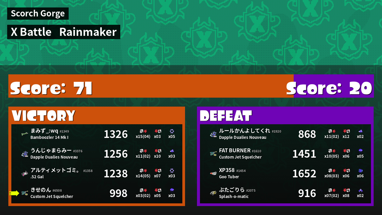 | Mode | Rainmaker - X Battle | ||