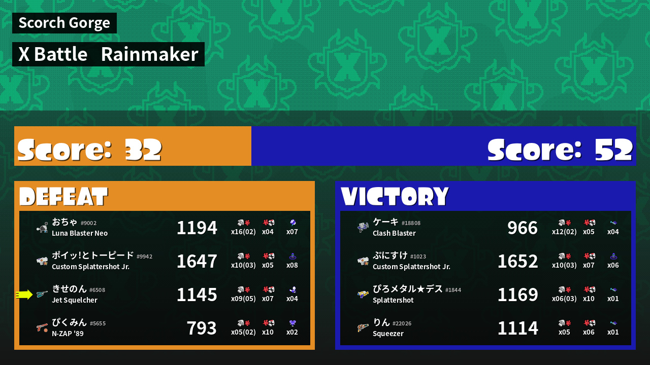| Medals | #1 Popular Target #1 Splat Assister #1 Ink Vac User | ||