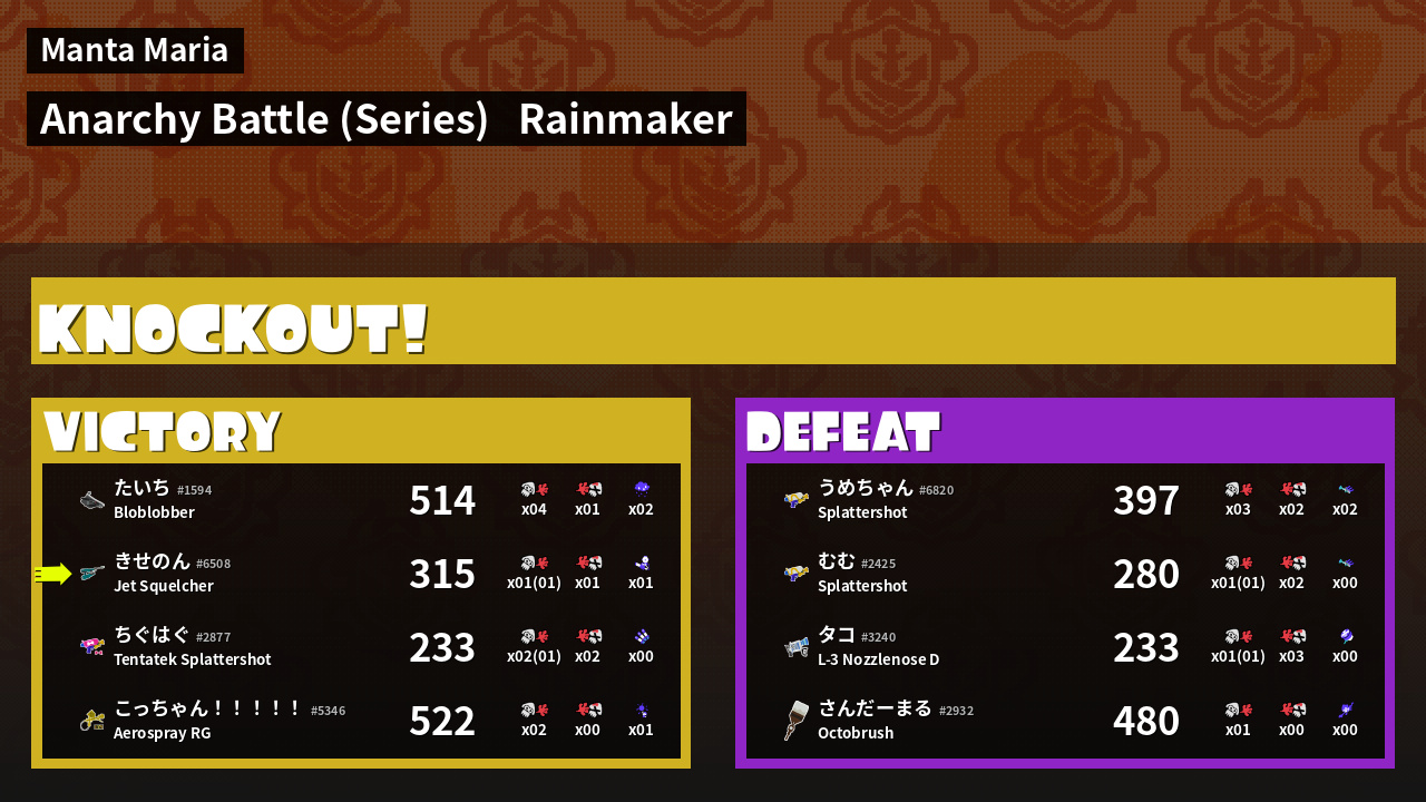 | Mode | Rainmaker - Anarchy Battle (Series) | ||
