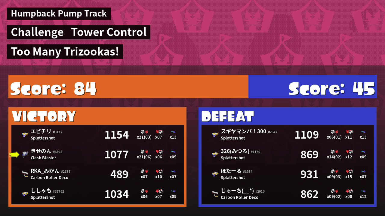 | Medals | #1 Overall Splatter #1 Splat Assister #1 Tower Stopper | ||