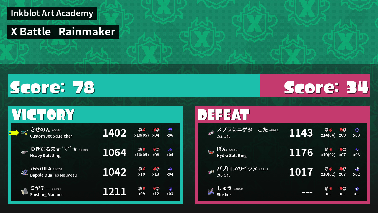 | Medals | #1 Overall Splatter #1 Turf Inker #1 Super Jump Spot | ||