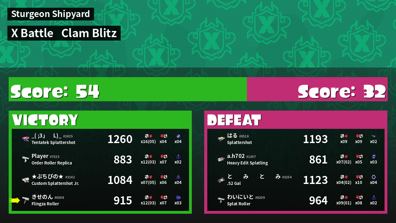 | Mode | Clam Blitz - X Battle | ||