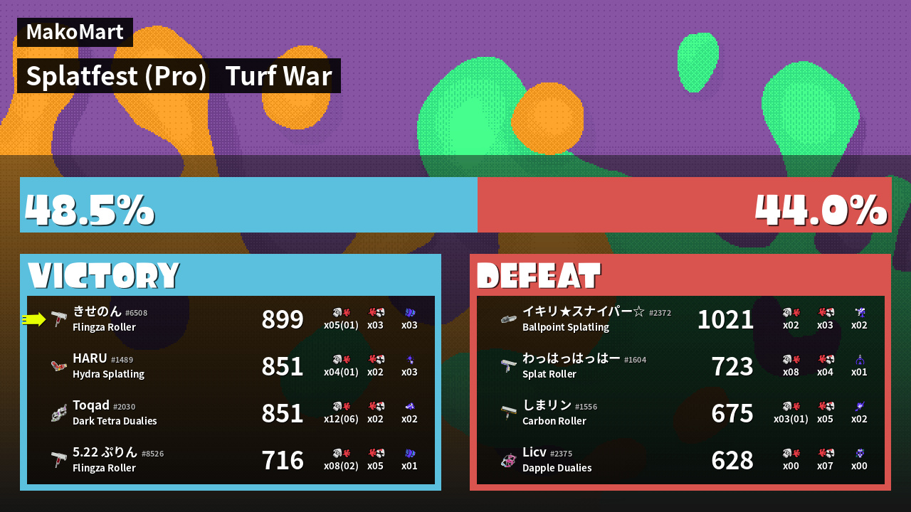 | Mode | Turf War - Splatfest (Pro) | ||