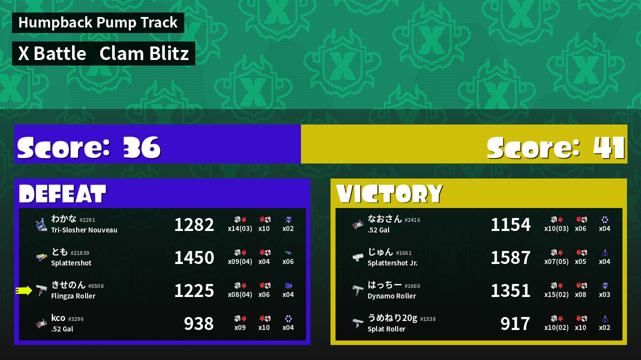 | Mode | Clam Blitz - X Battle | ||