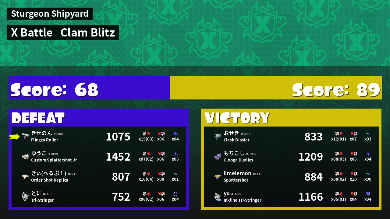 | Medals | #1 Overall Splatter #1 Clam Carrier #1 Enemy Splatter | ||