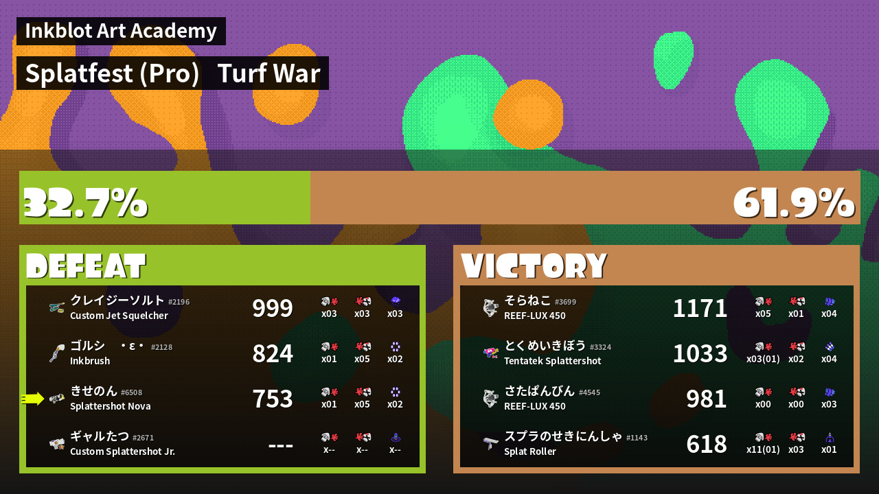 | Mode | Turf War - Splatfest (Pro) | ||