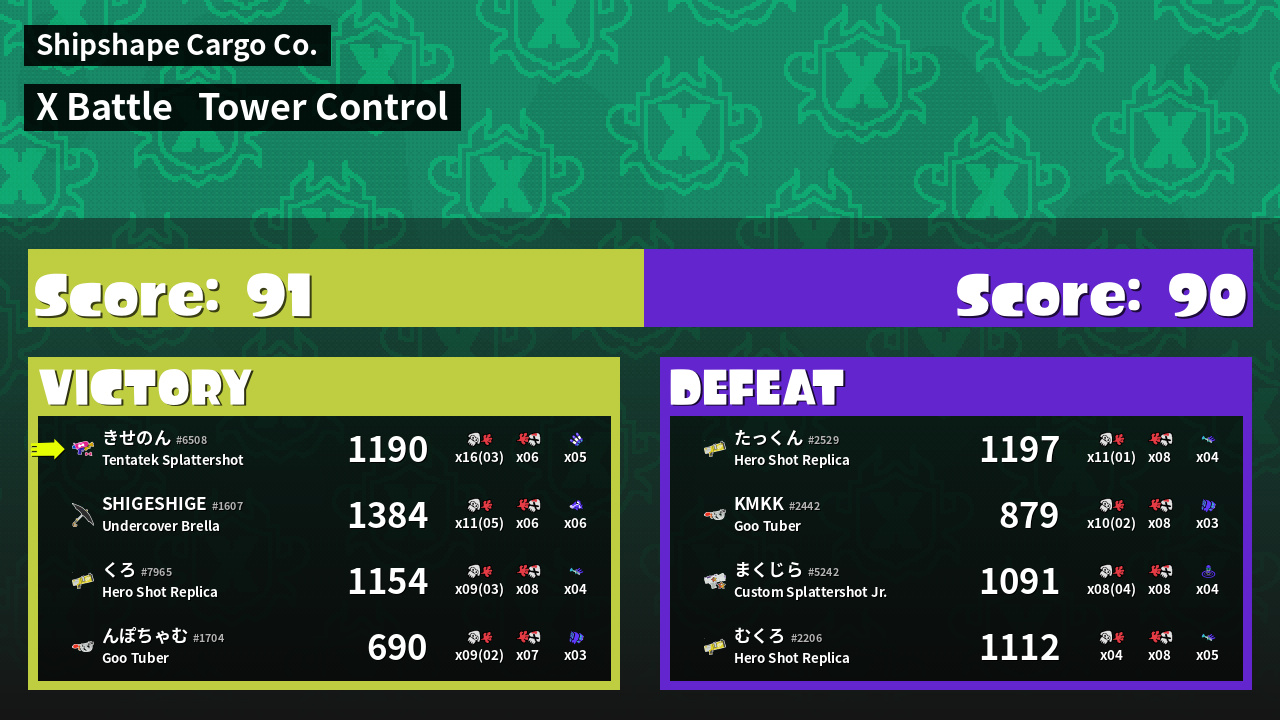 | Mode | Tower Control - X Battle | ||