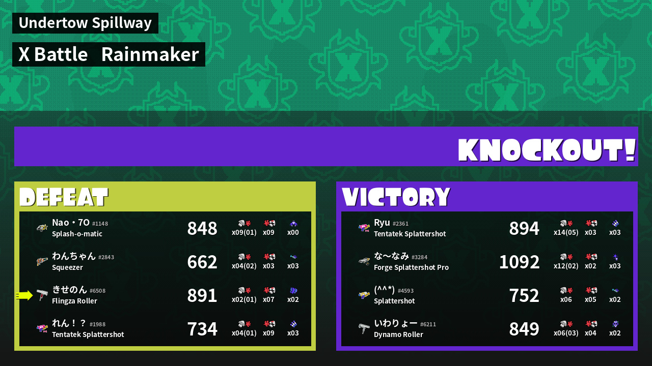 | Medals | #1 Turf Inker #1 Tenta Missiles User #2 Splat Assister | ||