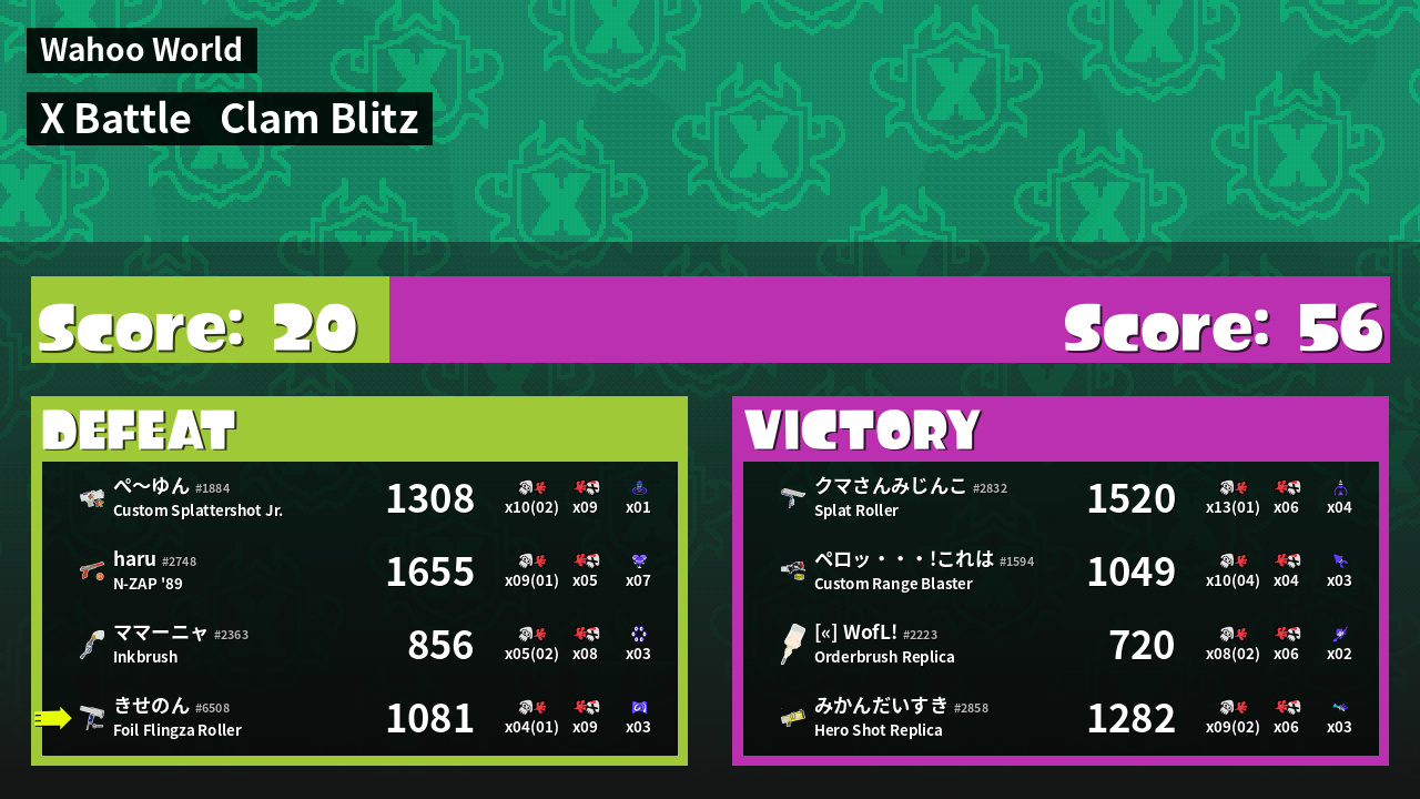 | Mode | Clam Blitz - X Battle | ||