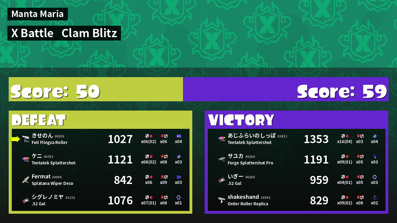 | Mode | Clam Blitz - X Battle | ||