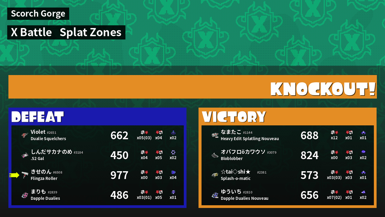 | Medals | #1 Splat Zone Inker #1 Turf Inker #1 Damage Taker | ||