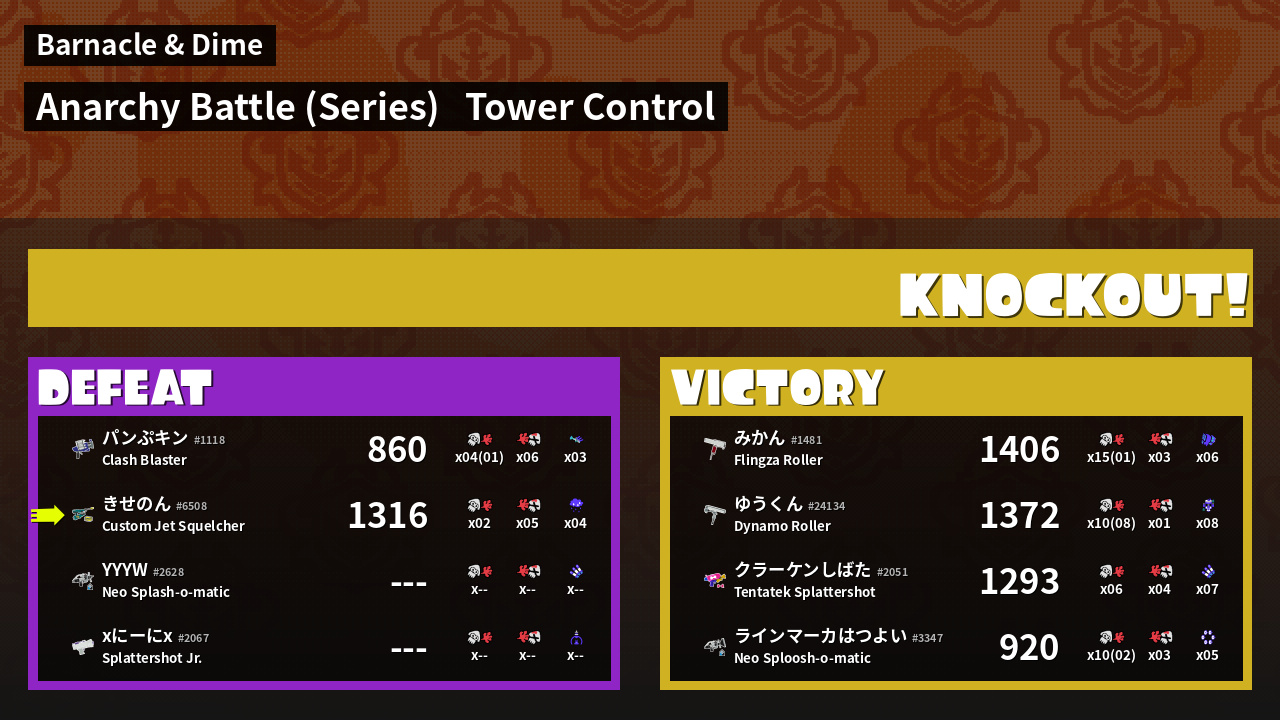 | Mode | Tower Control - Anarchy Battle (Series) | ||