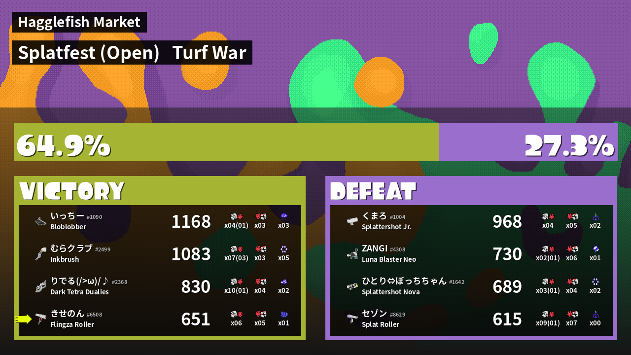 | Weapon | Flingza Roller ( Ink Mine / Tenta Missiles) | ||