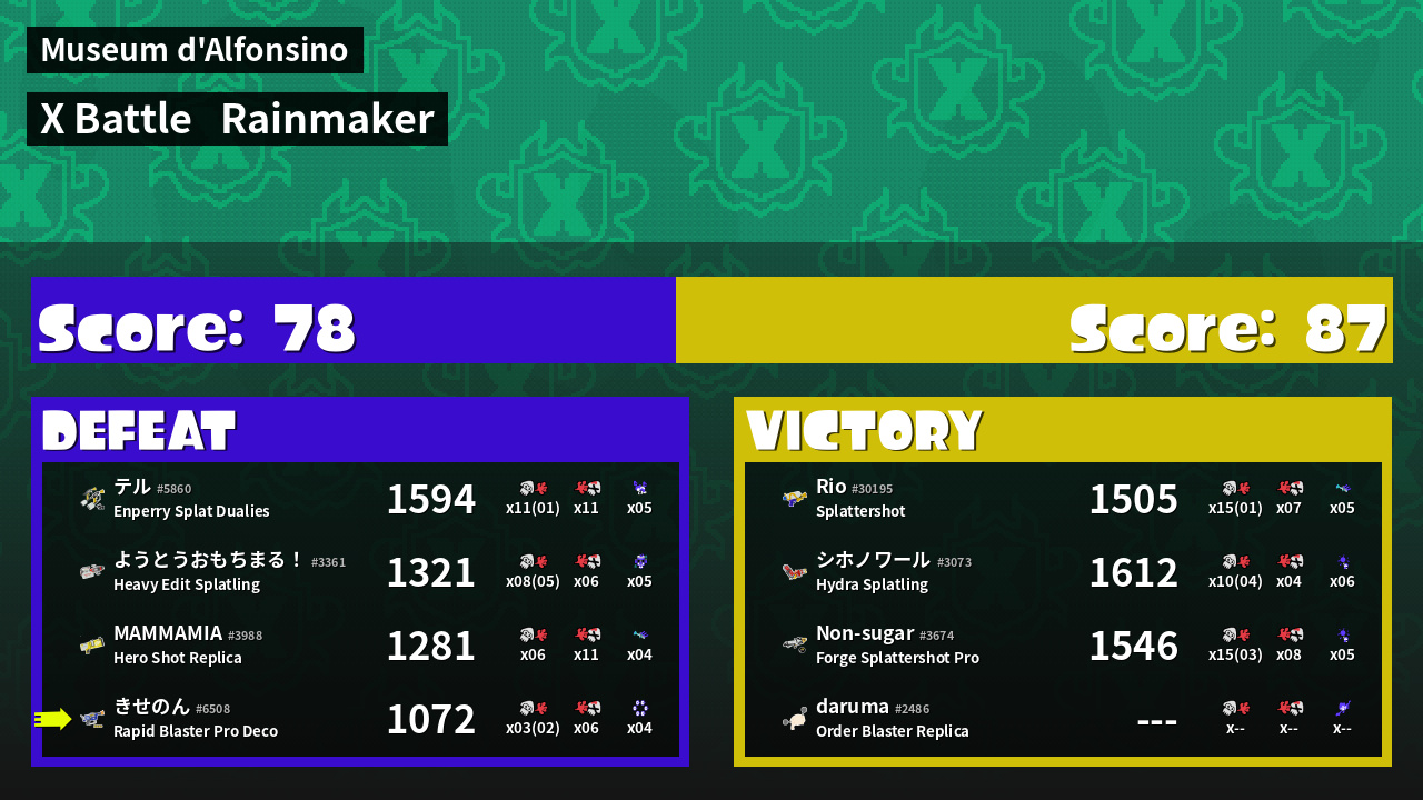 | Medals | #1 Super Jump Spot #1 Killer Wail 5.1 User #2 Splat Assister | ||