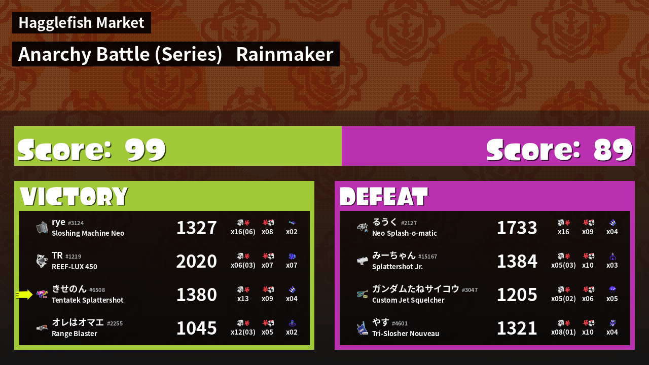 Results of きせのん's Battle