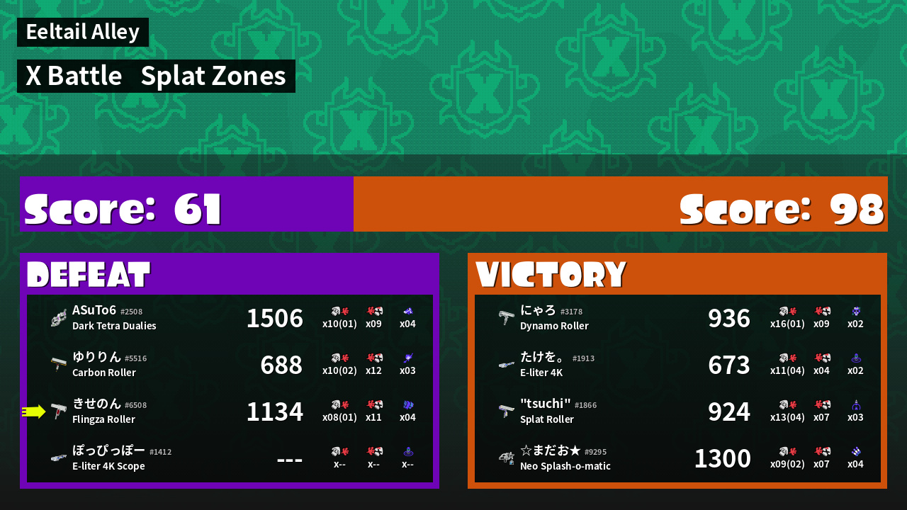 | Medals | #1 Splat Zone Inker #1 Tenta Missiles User #2 Splat Zone Guard | ||